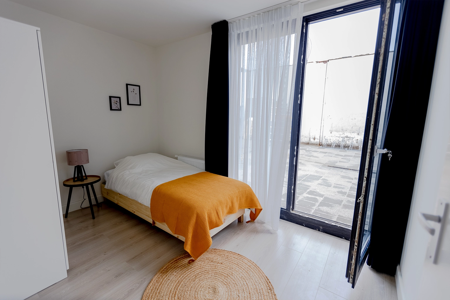 Newly renovated ground-floor courtyard house of 83 m², located in a small-scale apartment complex at Minderbroederssingel 33, in the historic city center of Roermond. The apartment features a spacious living room with an open, fully equipped kitchen, three bedrooms, a bathroom and a separate toilet. One bedroom is situated on the ground floor and has French doors opening onto a private patio of approx. 10 m². The complex is characterized by a large inner courtyard and a beautiful monumental appearance.