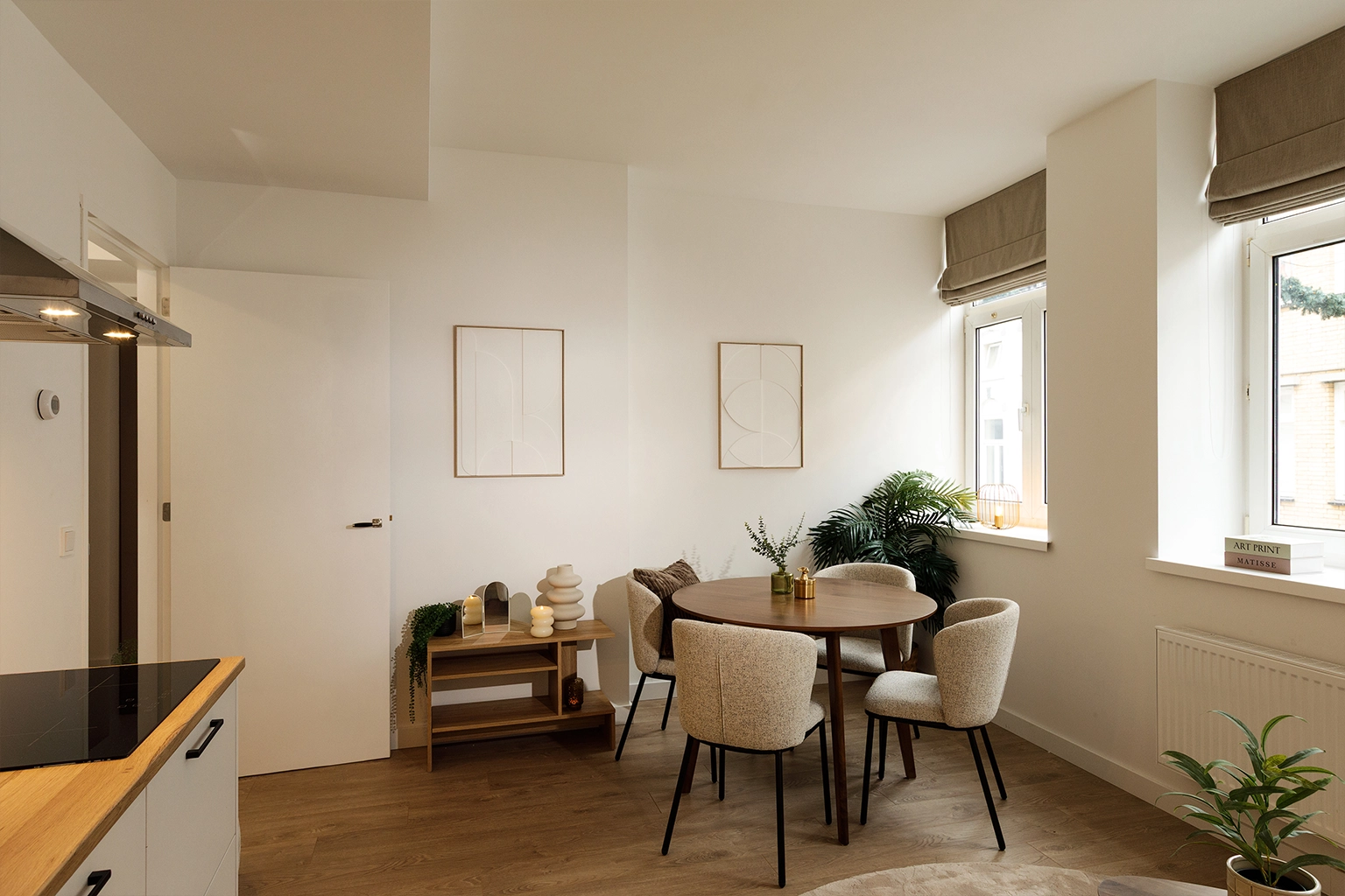 Beautifully furnished 56 m² apartment in the heart of Roermond’s historic city center, within the newly renovated Schoenmakersstraat 13 complex. Located on the first floor, the apartment offers a bright living room with an open, fully equipped kitchen, two bedrooms, a modern bathroom and a separate toilet. It features high energy efficiency (Energy label A). Optional parking is available for rent or purchase.